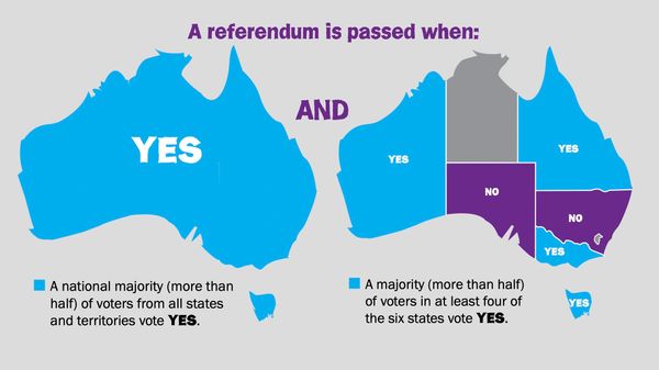 The proposal can only become law if more than 50% of voters all over Australia, AND more than 50% of voters in at least FOUR states, vote YES.