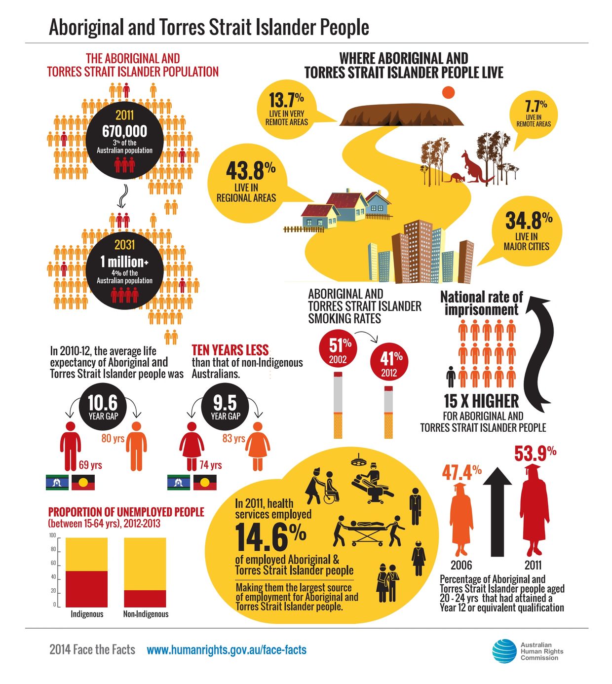 Aboriginal and Torres Strait Islander peoples fall behind on several markers including health, education, and employment, and they make up a far higher proportion of the prison population.