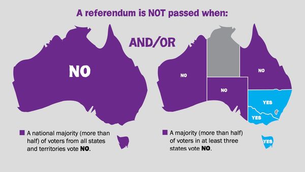 The proposal will be rejected if more than 50% of voters all over Australia, AND/OR more than 50% of voters in at least THREE states, vote NO.